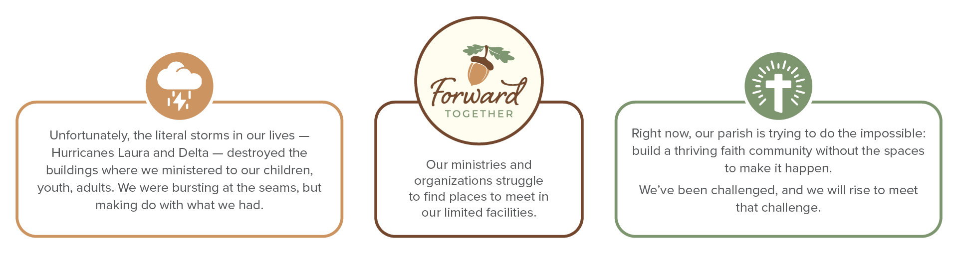 What God wills, God makes possible. That's why we are moving forward with confidence and faith. Yes, there will be challenges. But we believe this Forward Together campaign is God's Will. He will provide for our parish through the generosity of our people, just as He has in the past.